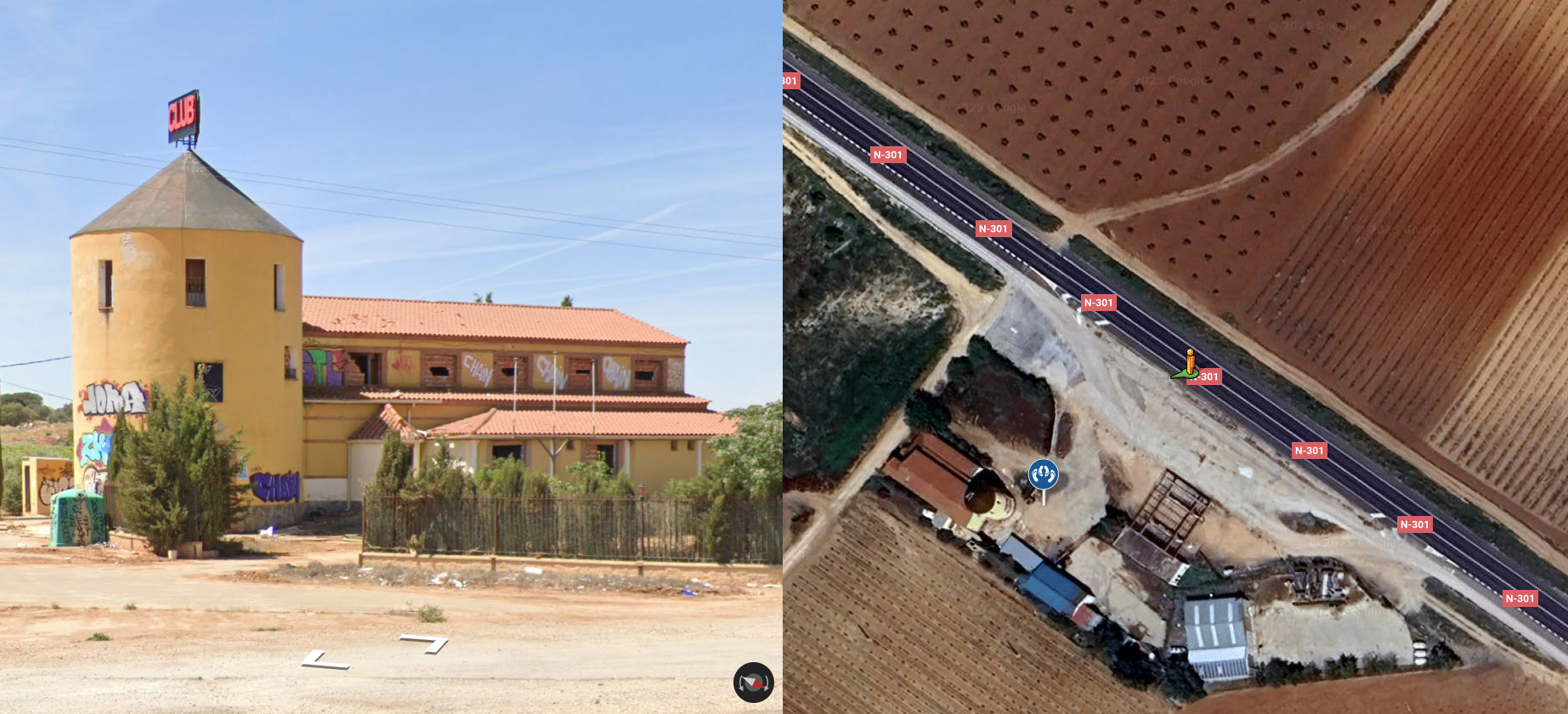 Nacional de Quintanar de la orden hacia Albacete saliendo de Quintanar de la orden a 3 km club abandonado